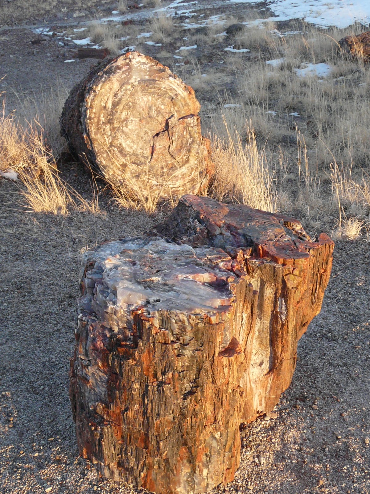 Petrified wood found in the park and the surrounding region is made up of almost solid quartz. Each piece is like a giant crystal, often sparkling in the sunlight as if covered by glitter. The rainbow of colors is produced by impurities in the quartz, such as iron, carbon, and manganese.